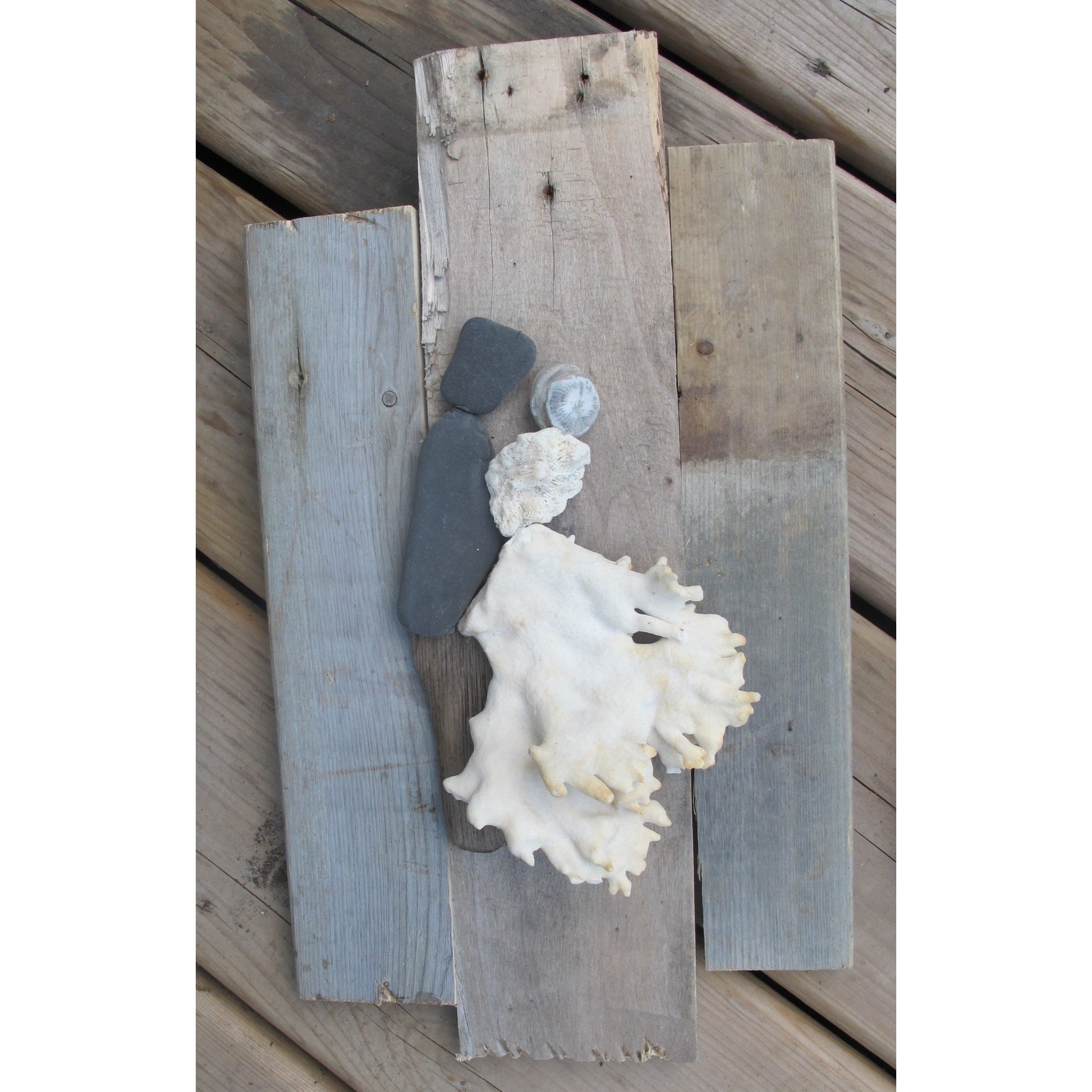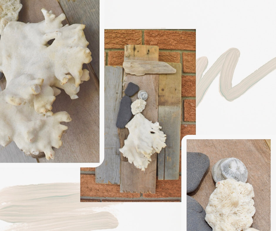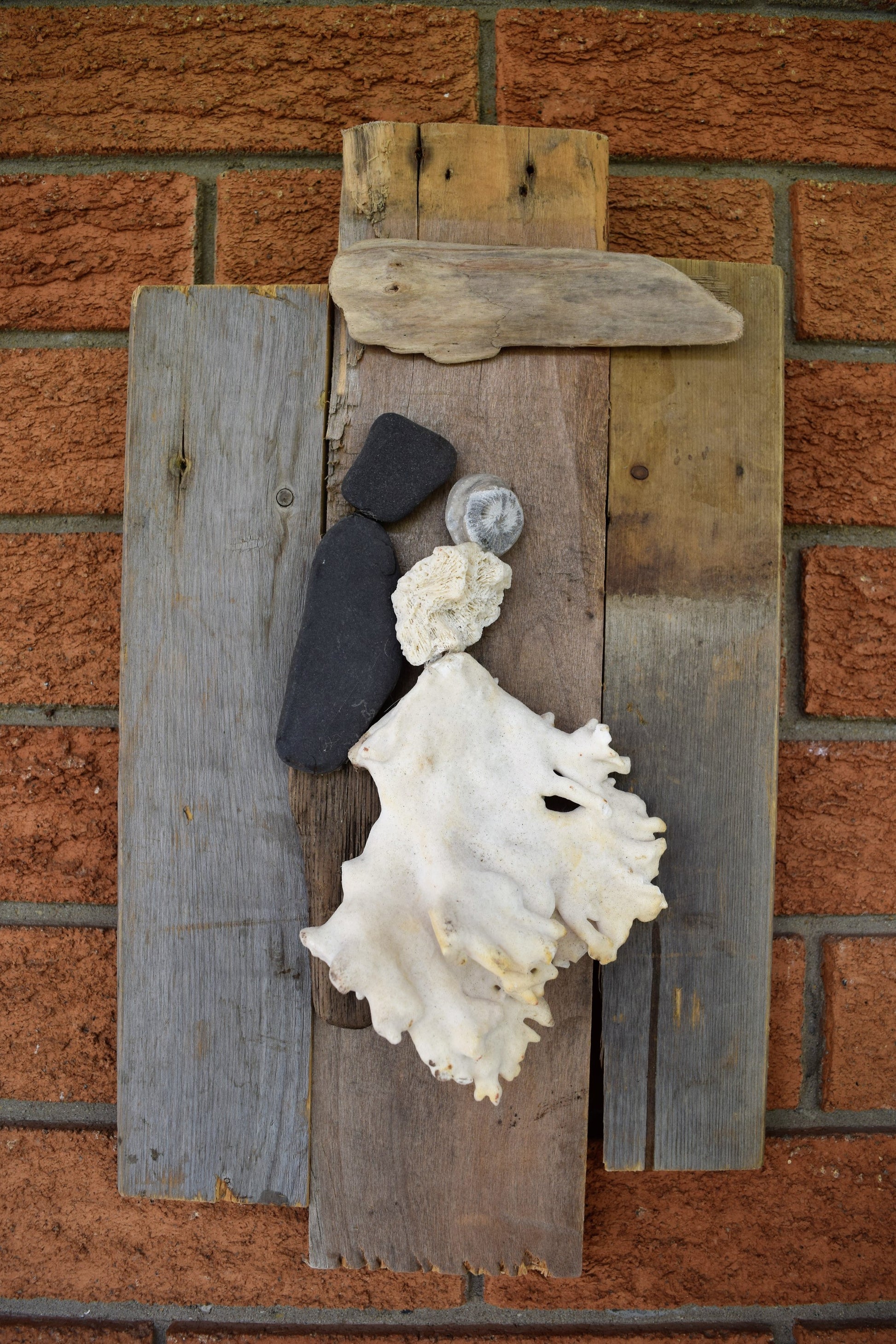 The corals and stones are set on 3 planks of driftwood, rescued from the lake. It measures 9' by 15'