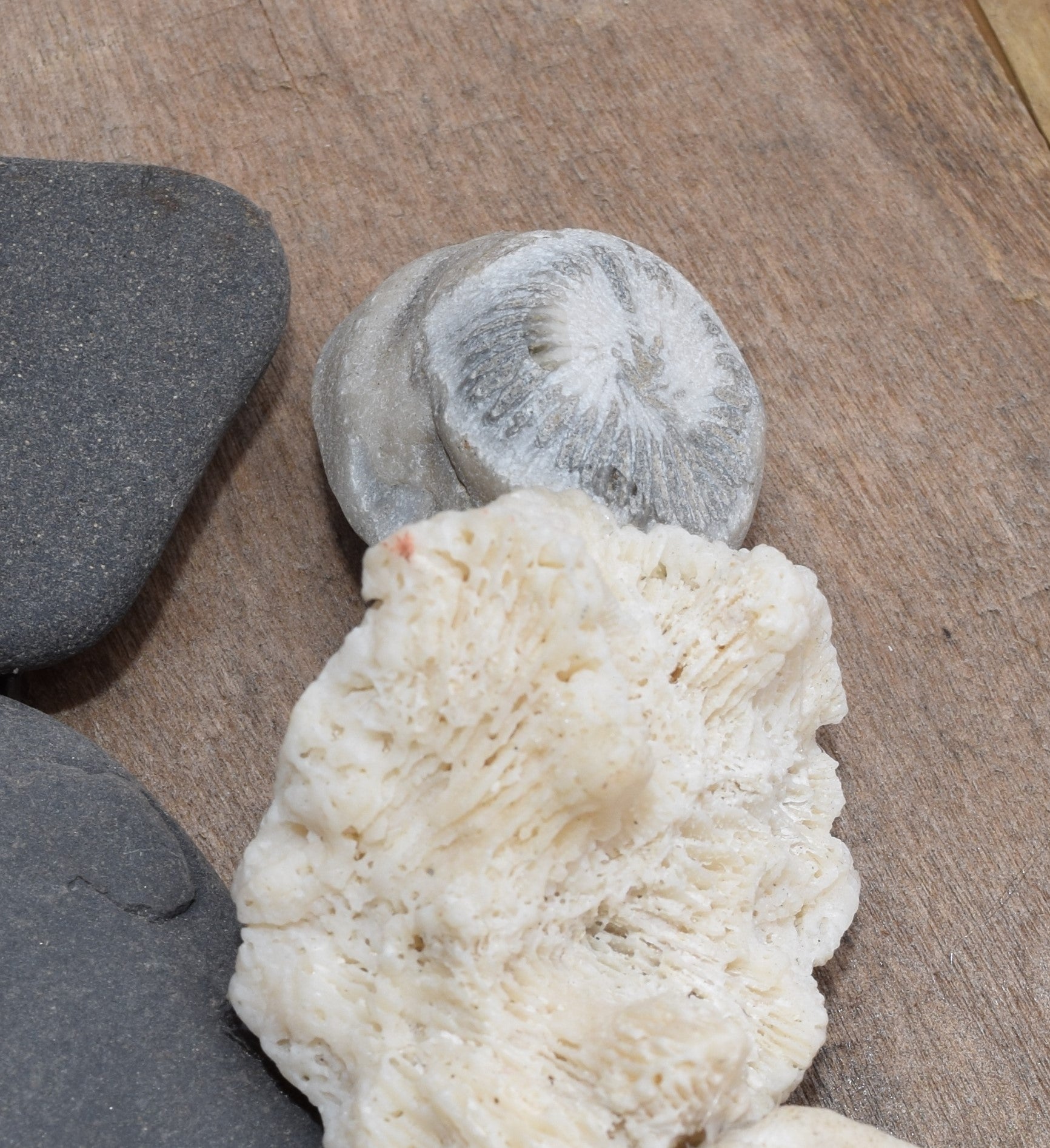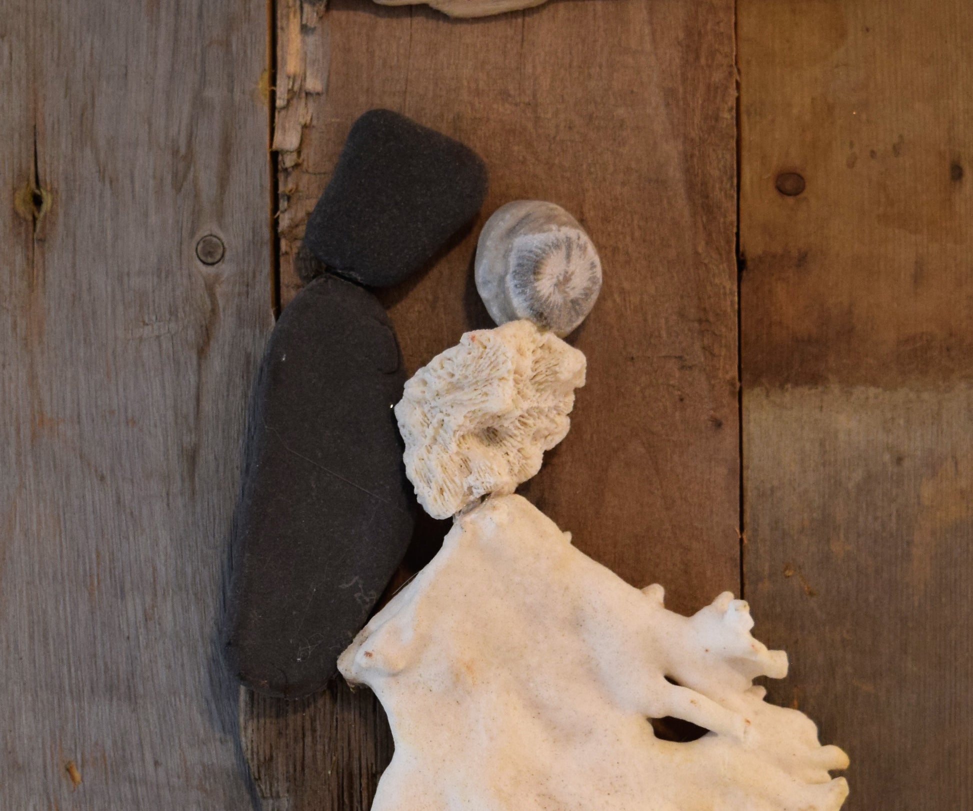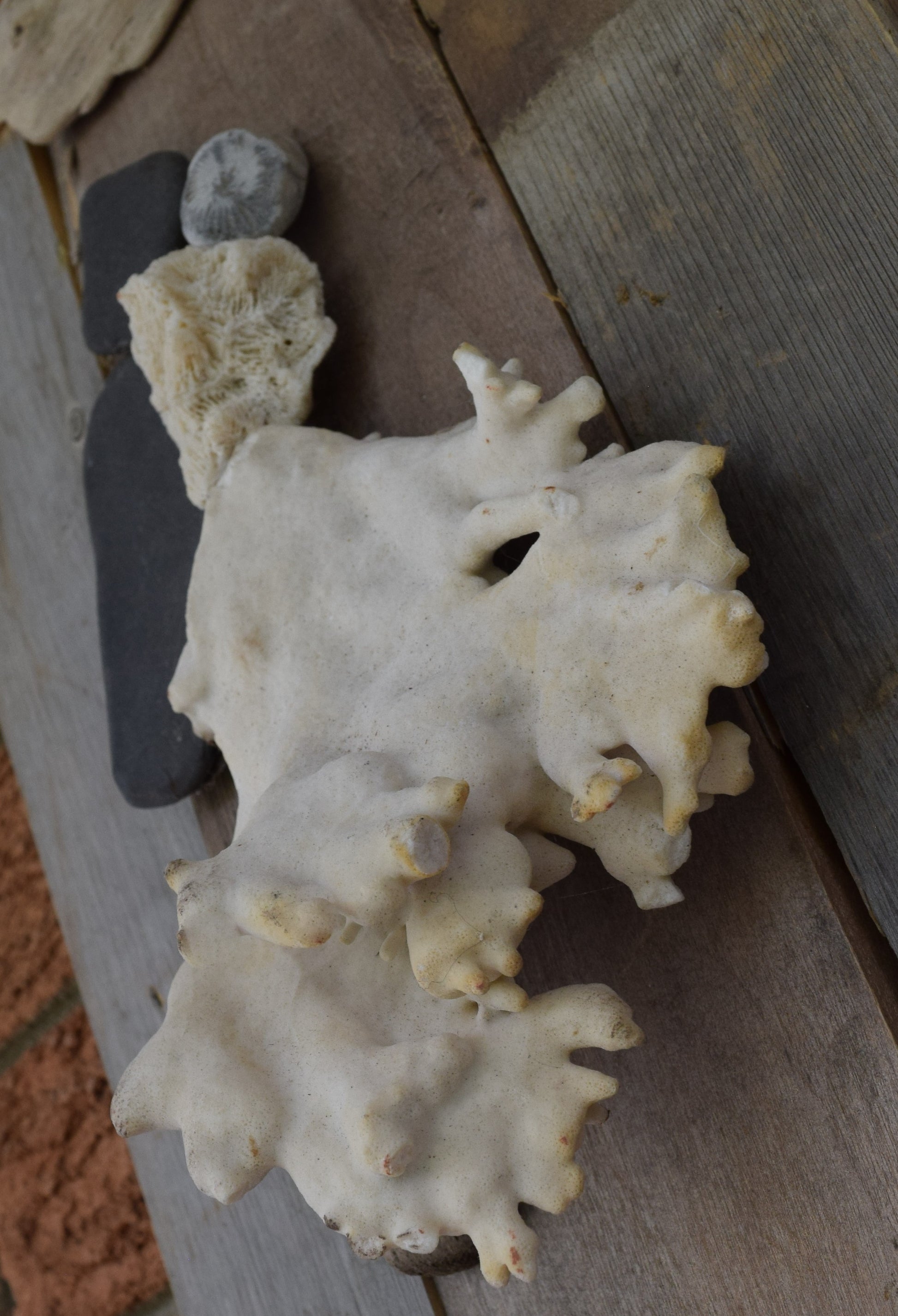 A piece of Horn Coral is being used as a bonnet (Ordovician Period, 488 million years ago) Interestingly, Horn Coral is related to the jellyfish family. We still find pieces of this stunning animal in Lake Huron.