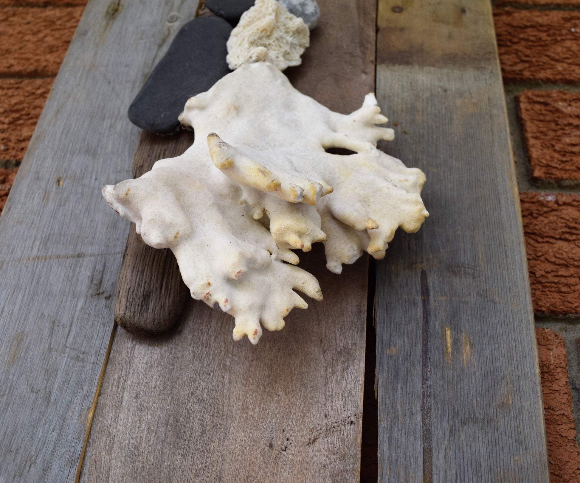 The stunning skirt in this piece is Elkhorn Coral. This species of coral is structurally complex with many large branches. The coral structure closely resembles that of elk antlers. This particular piece came from the island of Cozumel.