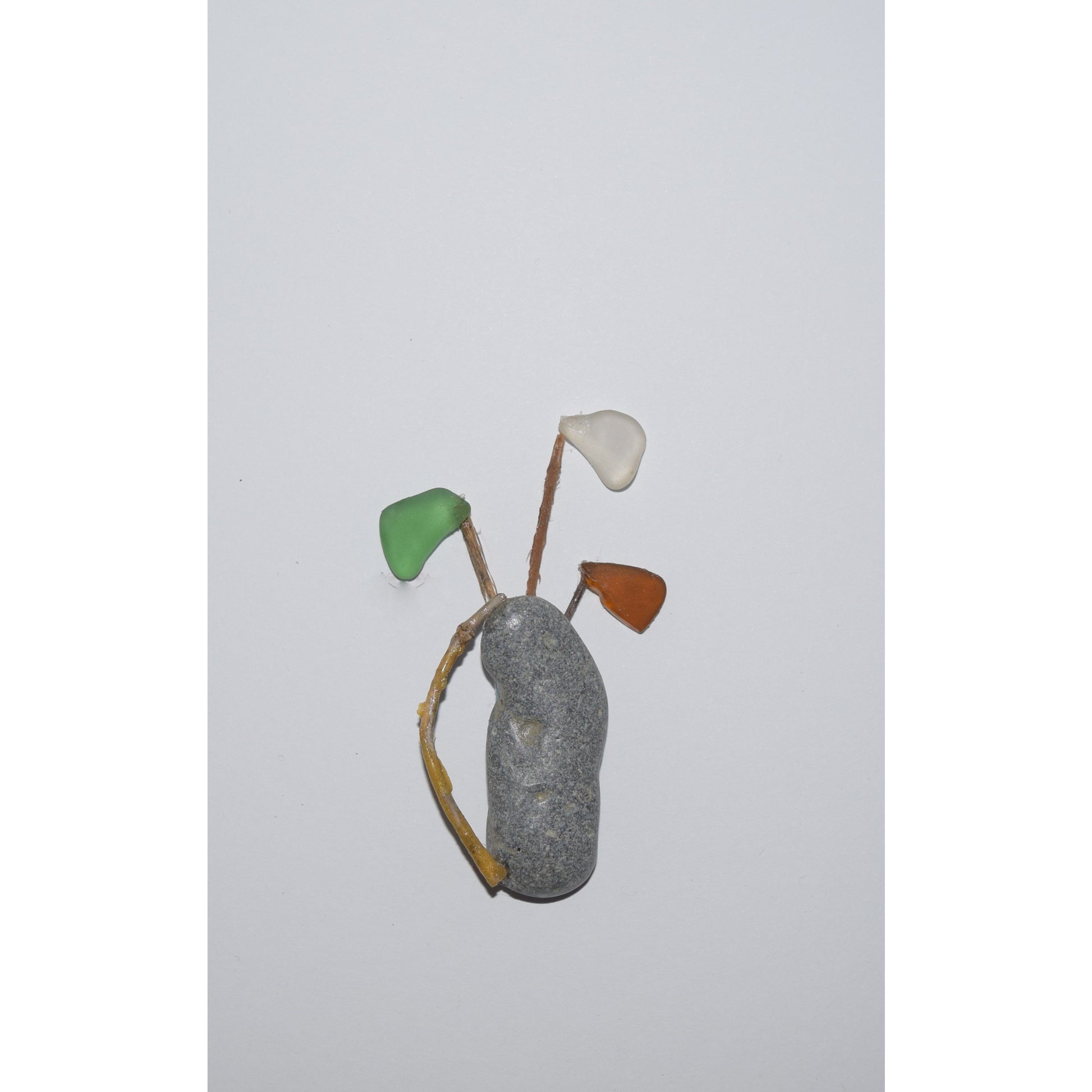 This stone was the perfect golf bag! Beach glass makes up the golf clubs.