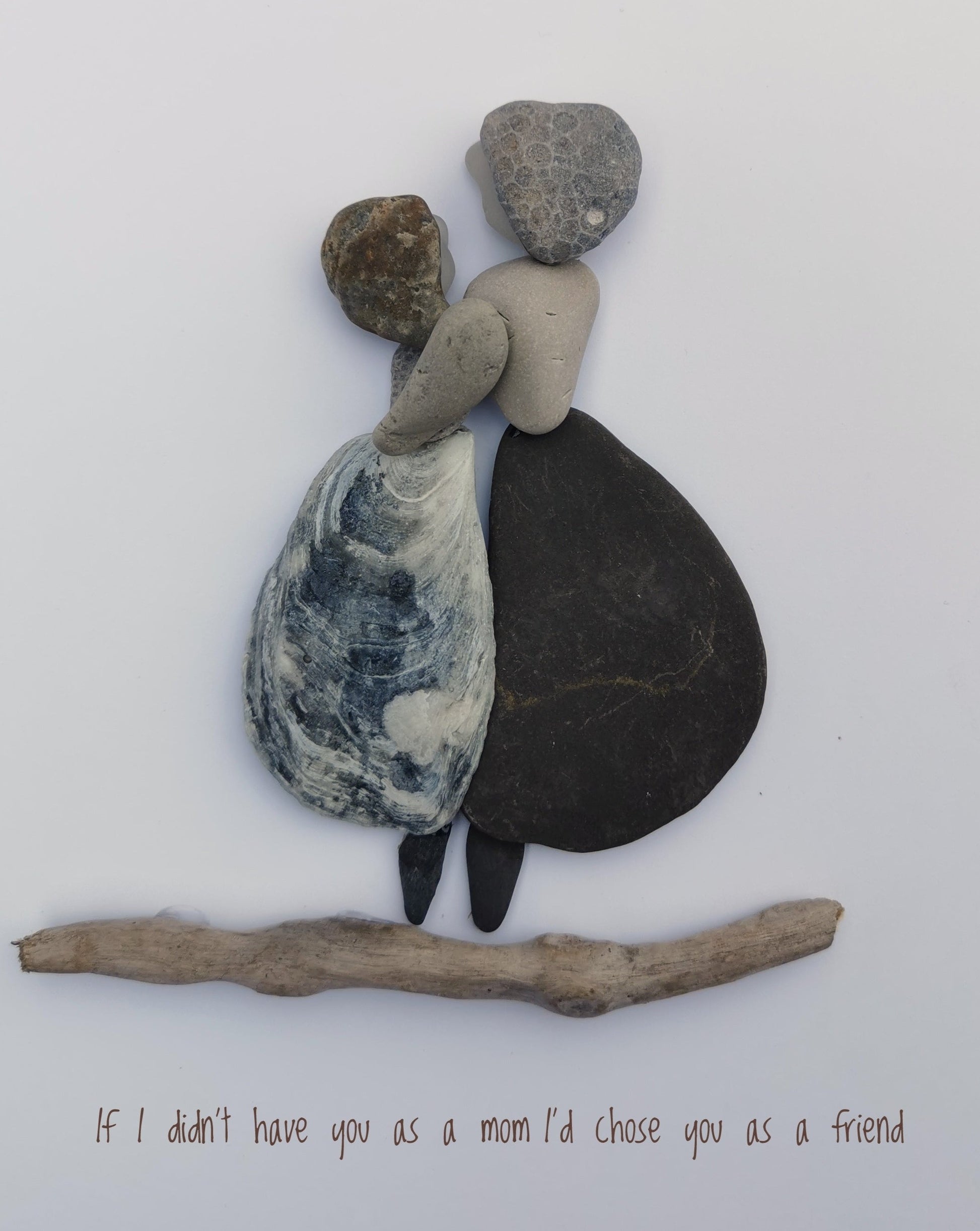 Give a gift to remember. From the mom's honeycomb coral bonnet, and its soft sea glass profiles, to the beautiful skirt from Myrtle Beach, North Carolina, this pebble art piece is truly a keeper.