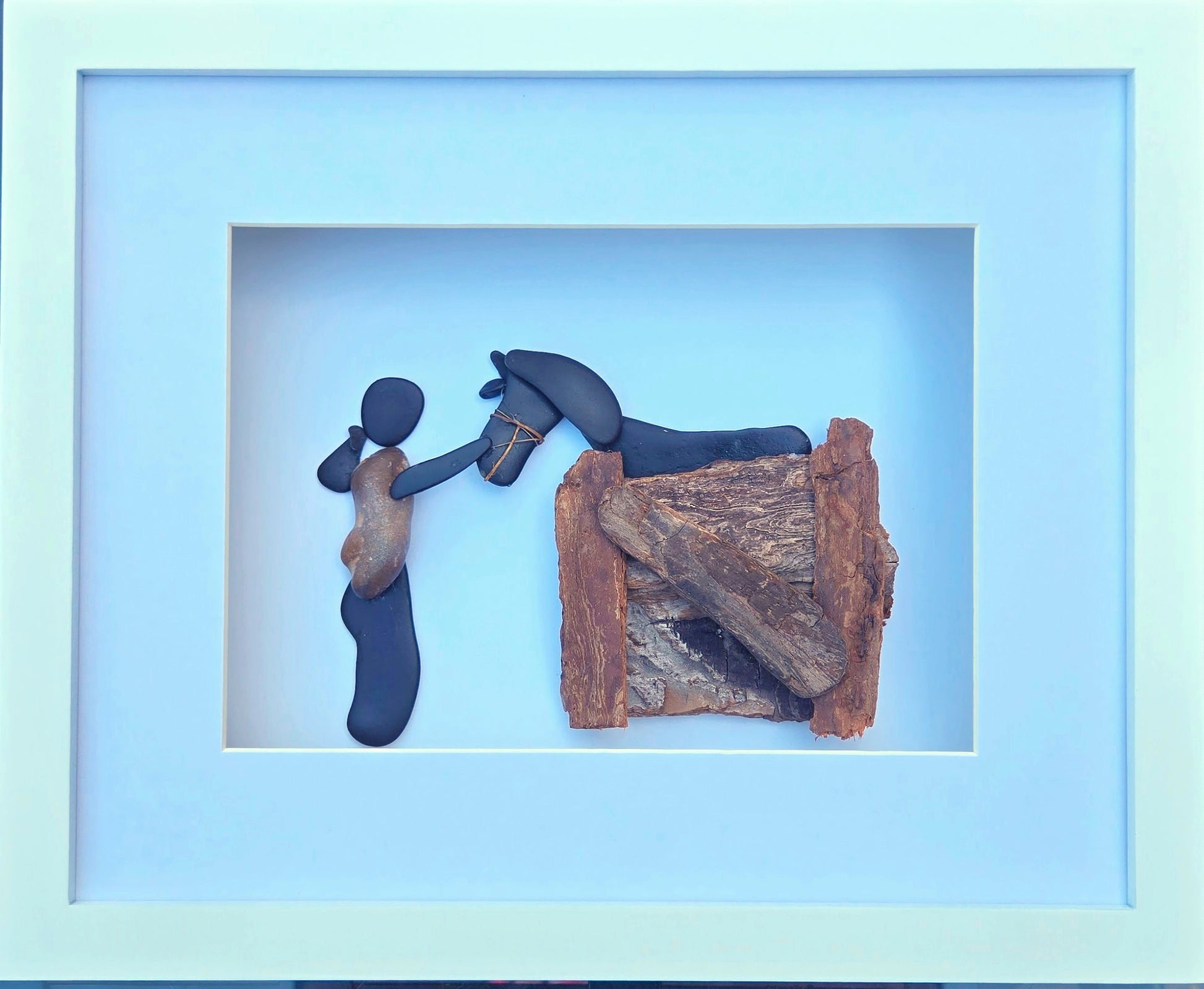 Within a driftwood stable, a girl reaches out with quiet tenderness, her hand resting against the gentle strength of her horse. Formed from natural stone and wood, their bond is timeless—built not of words, but of trust, care, and companionship. In this still moment, the art holds the echo of devotion between kindred spirits.