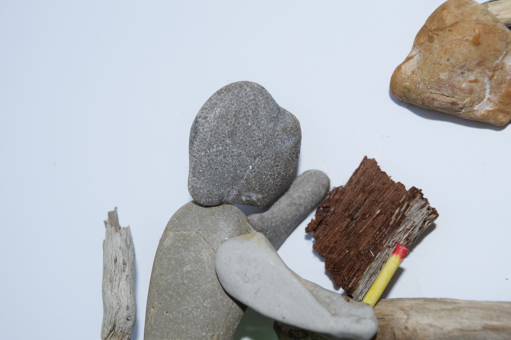 Most pieces start with an incredible find. That stone or driftwood dictates the size and style of the rest of the project. In this case, it was the stone used for the girl's head, which appears to have a natural hairline giving her a beautiful profile and hairstyle.