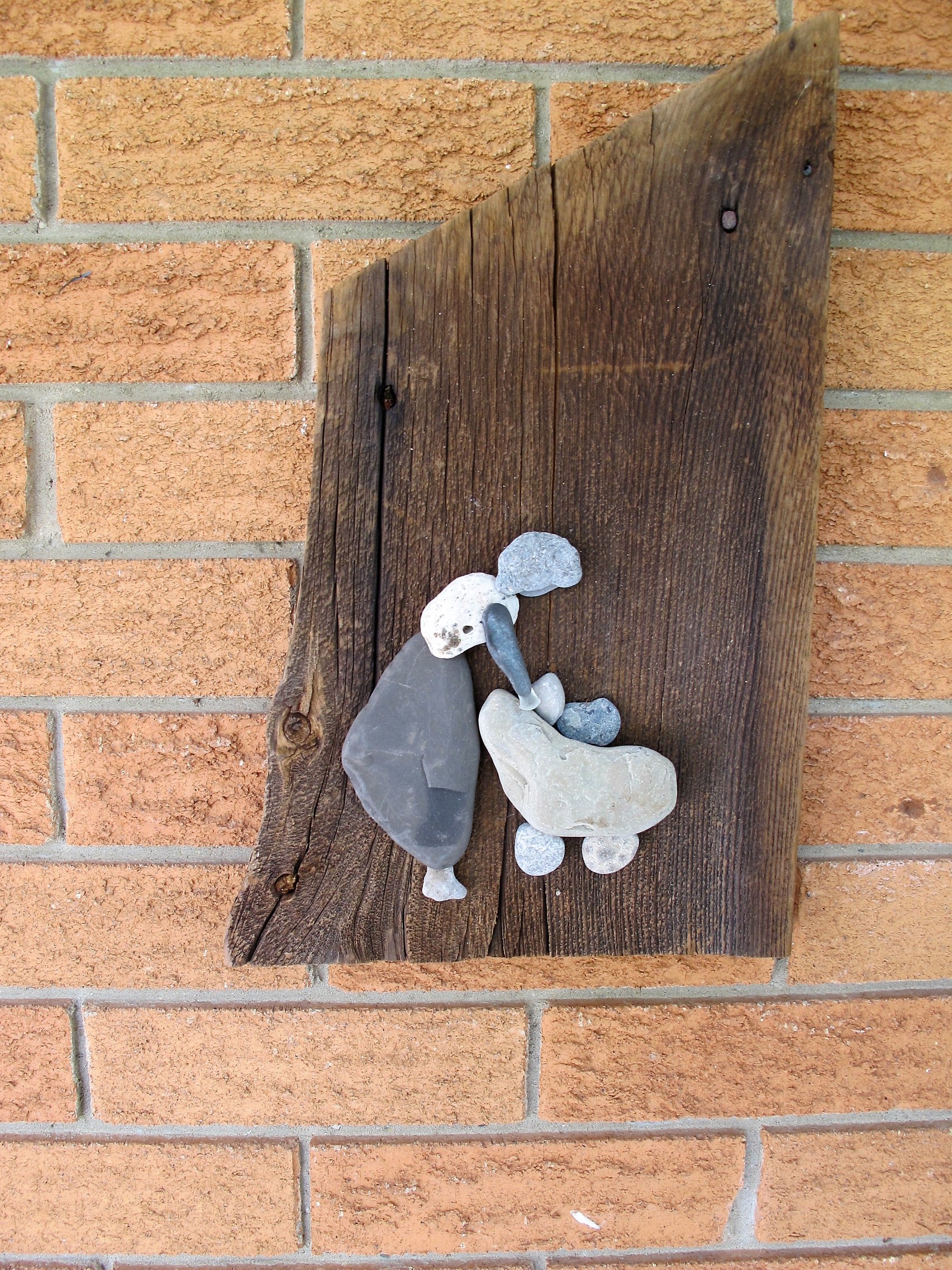 These incredible stones tell a touching story. The indescribable bond between mother and child. Set on a very rustic piece of barn wood, and combining sea glass, fossils and stones to make an incredibly beautiful one-of-a-kind piece of art.